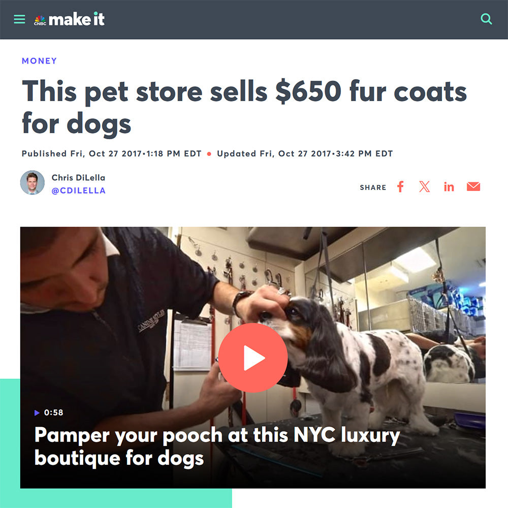 We’re thrilled to be featured in CNBC’s "Pamper your pooch at this NYC luxury boutique for dogs" and video! The article shares our story, from crafting designer-inspired collections to pampering pets of A-listers like Martha Stewart and Oprah. Check it out here to see what makes Canine Styles the go-to for pet luxury!