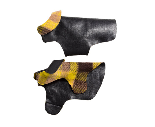 Hand-Cut - Black Leather w/Yellow Plaid Shearling