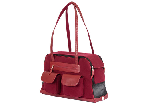 Dog Carrier - Winter - Navy & Burgundy Wool Carrier