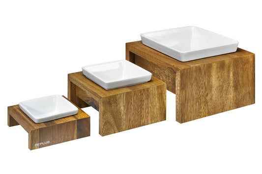 Artisan Moderno Gray Double Feeder - Wood - 3 Sizes