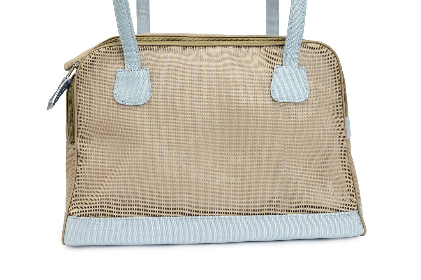 This versatile dog carrier meets most airline travel requirements for convenient, comfortable transport. Zippered top and magnetic closures allow quick, secure access, while the front opening window provides visibility. Breathable canvas and mesh keep your pup cool and relaxed on the go. Removable pillow and tether strap add comfort and safety features for a reliable, comfortable travel solution.