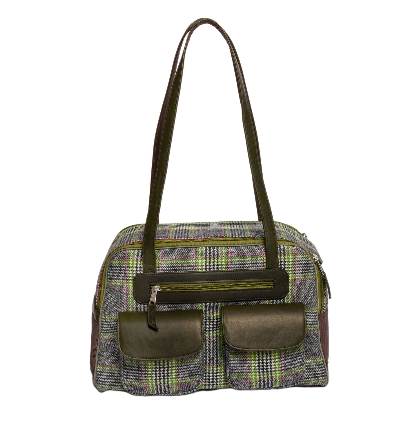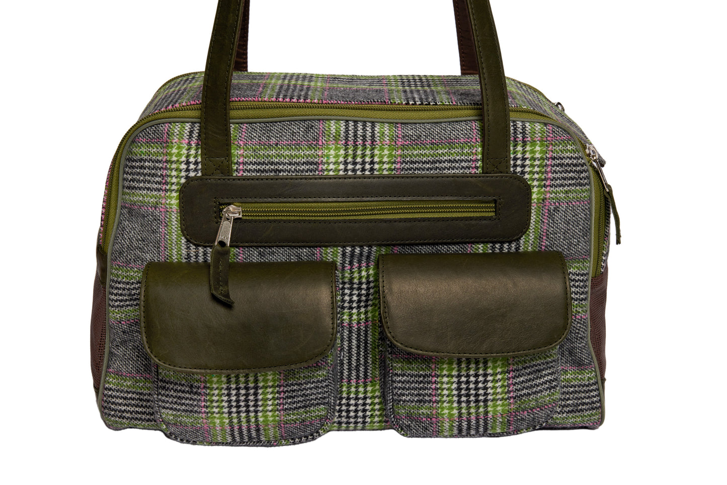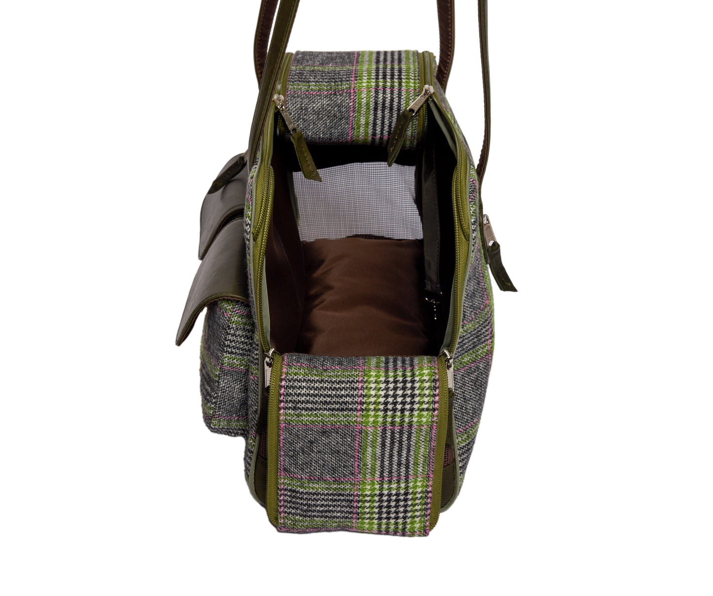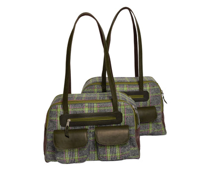 Dog Carrier - Winter - Cashmere Dog Carrier - Gray & Green Wool Plaid