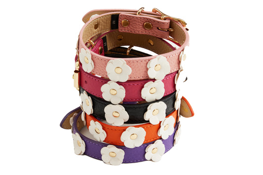 Canine Styles Soft Leather Flower Dog Collar - 5 Color Options