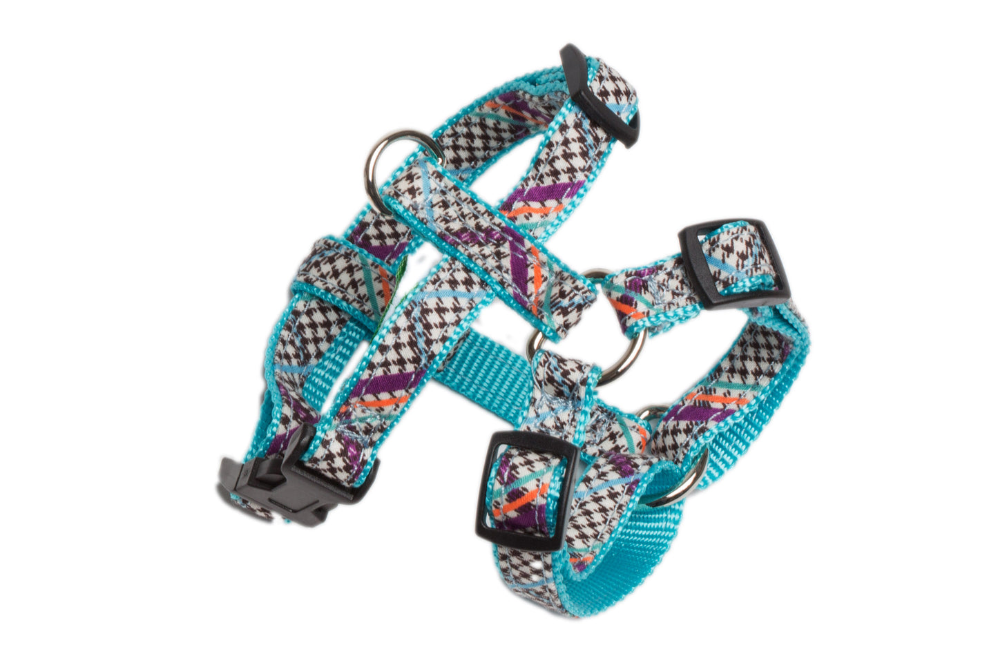 The incredibly strong and durable nylon harness comes in sizes small, medium, large, and extra-large. Fully adjustable and buckle-free.