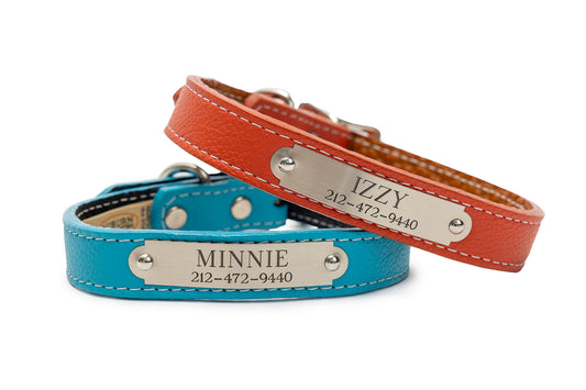 Auburn Dog Collar - Dog Collar, Soft Leather, 11 Colors, Additional Stainless Name Plate Available