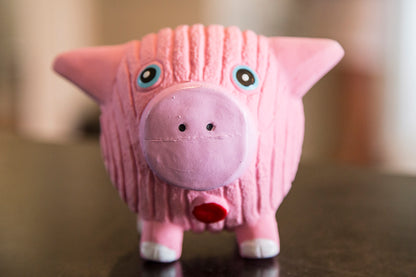 Meet Hamlet the Pig Ruff-Tex® Ball—your pup’s new favorite barnyard buddy! With his bright pink body and charming blue eyes, Hamlet is ready to bring bouncy, squeaky fun to playtime.