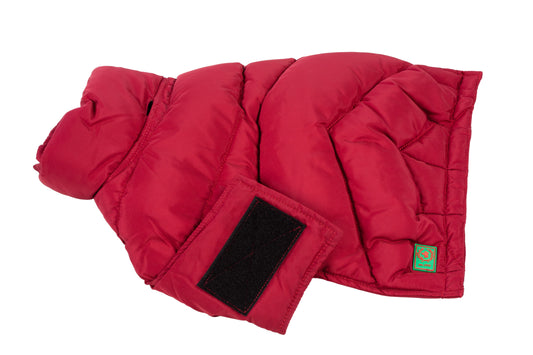 Down Puffer Coat - Brown & Cranberry