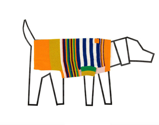 Dog Sweater - Blue/Gold Hairy Crazy Striped Sweater