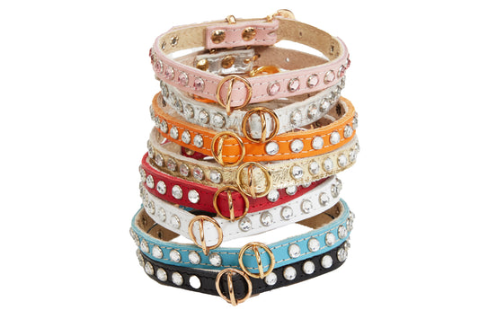 Jophi - Dog Collar - Soft Leather Rhinestone - 8 Color Options