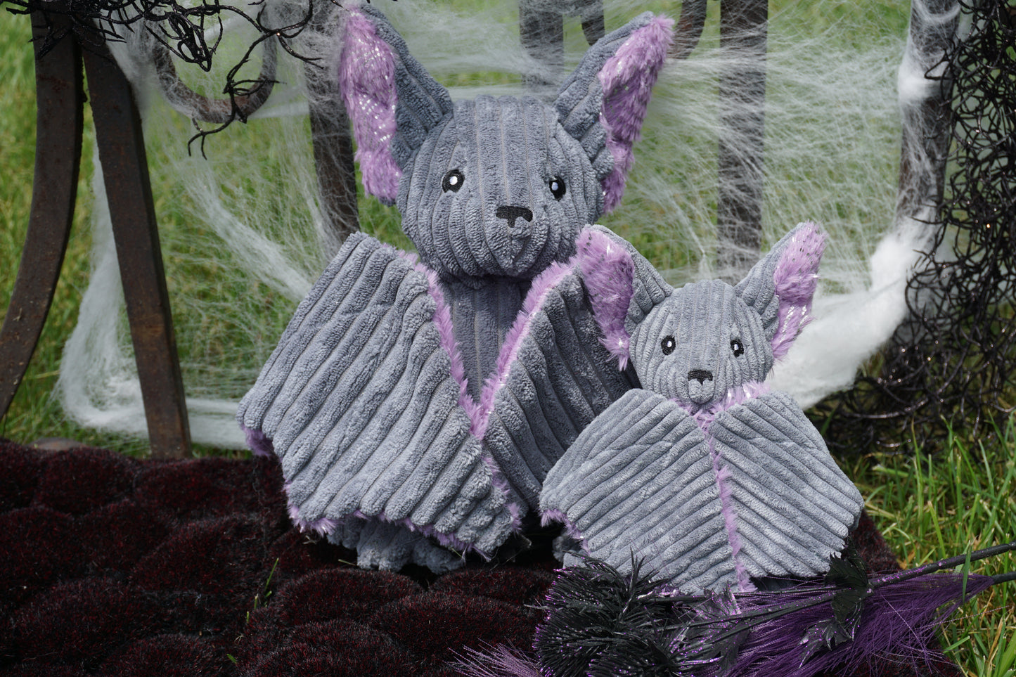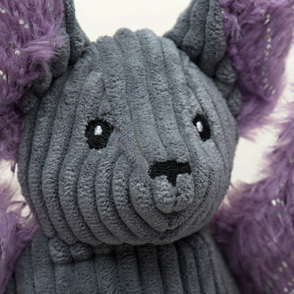 Boris Bat is a spirited companion for any spooky pup that turns every day into a haunted holiday! With super-soft corduroy and shimmery fabric, Boris Bat's velcro wings can be opened for flying fun or closed for cuddles.