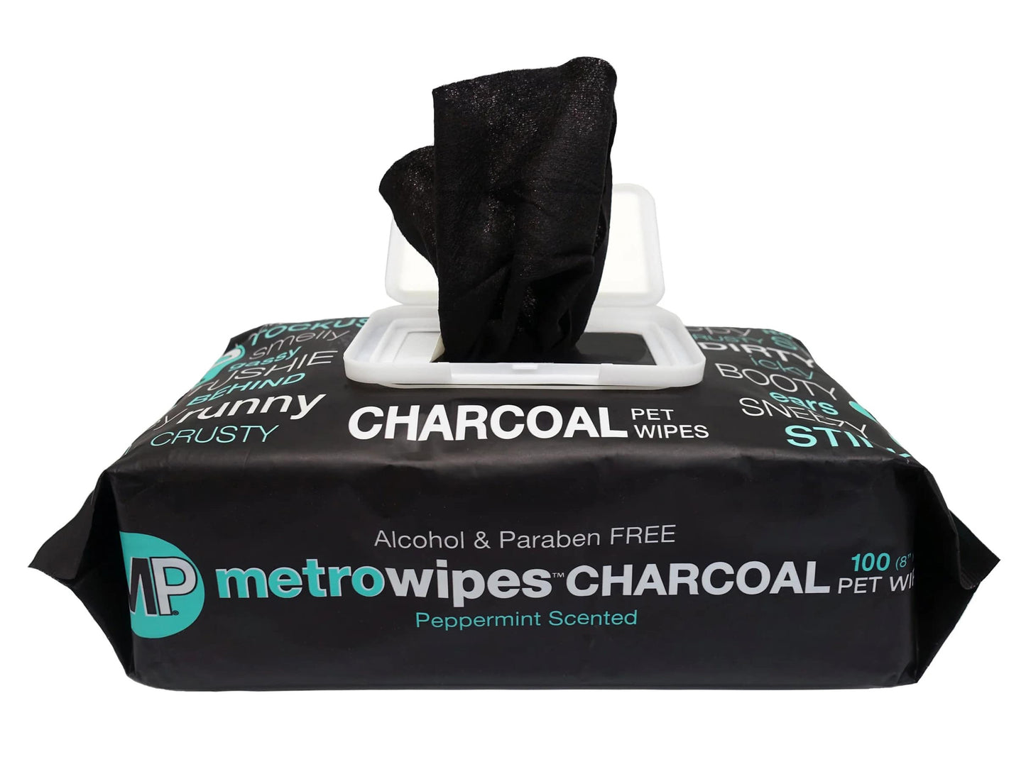 Case of Charcoal wipes. Metro Wipes® are not your average grooming wipe. We have the largest (8” x 8”) and thickest wipes available and the only activated charcoal wipes for pets in the US. These all-over wipes are easy to merchandise, stand out on your shelves, and have a great price point. Our award winning, patent pending Charcoal Peppermint wipe quickly absorbs toxins and odor, unlike any other wipe, and natural peppermint scent make them a go-to for body, ears, tushie, and paws. Always alcohol and paraben free Metro Wipes are a functional and unique addition to your grooming departments. Each package contains 100 wipes and offers a lower price point than others on the market