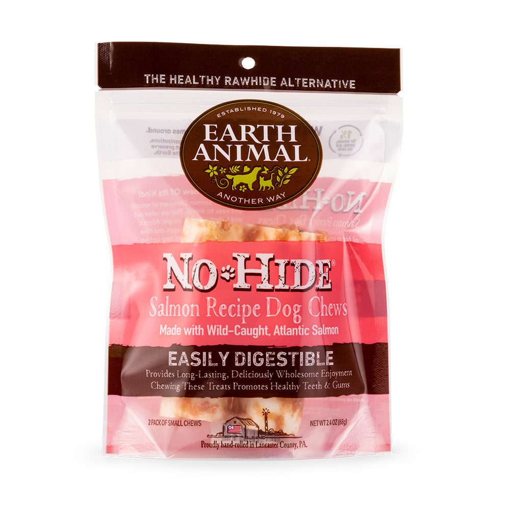 Our pledge to you; Earth Animal’s 4″ Salmon Chews are always made from wild caught salmon with no added chemicals. They are the perfect chew for medium size breeds. No-Hide Salmon Chews give new meaning to dog chews. Try the healthier alternative today!