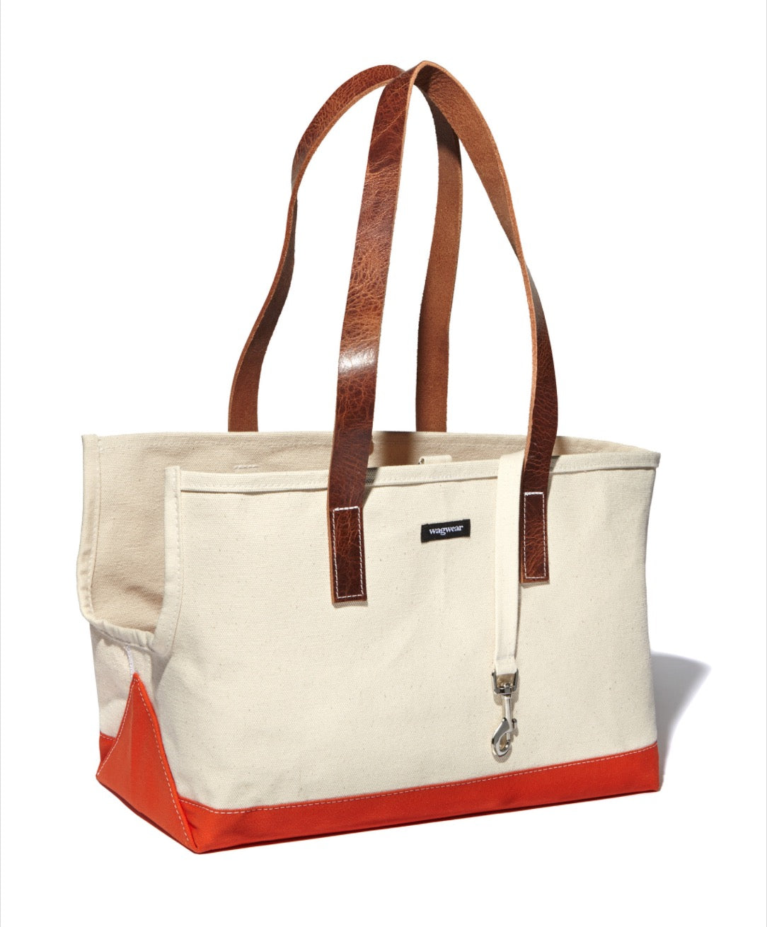 Carpenter Bag Carrier - Our most popular canvas tote has been modified to feature leather straps, a toggle closure and interior leash strap.