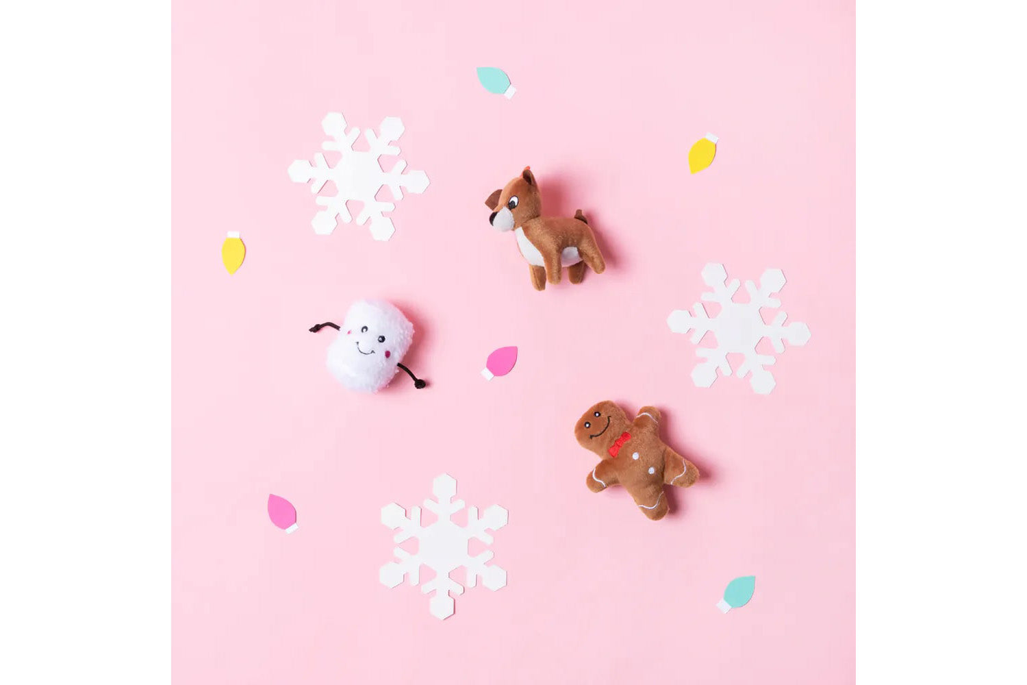 Enjoy the holiday spirit with the Holiday Miniz Santa’s Friends! These toys are ideal for swapping out Miniz in your dog’s Zippy Burrow® or as charming playthings for small dogs. The collection features three festive options - Gingerbread Man, Marshmallow, and Reindeer - each sold separately. Every toy includes detailed embroidery, one round squeaker, and soft stuffing for added fun.