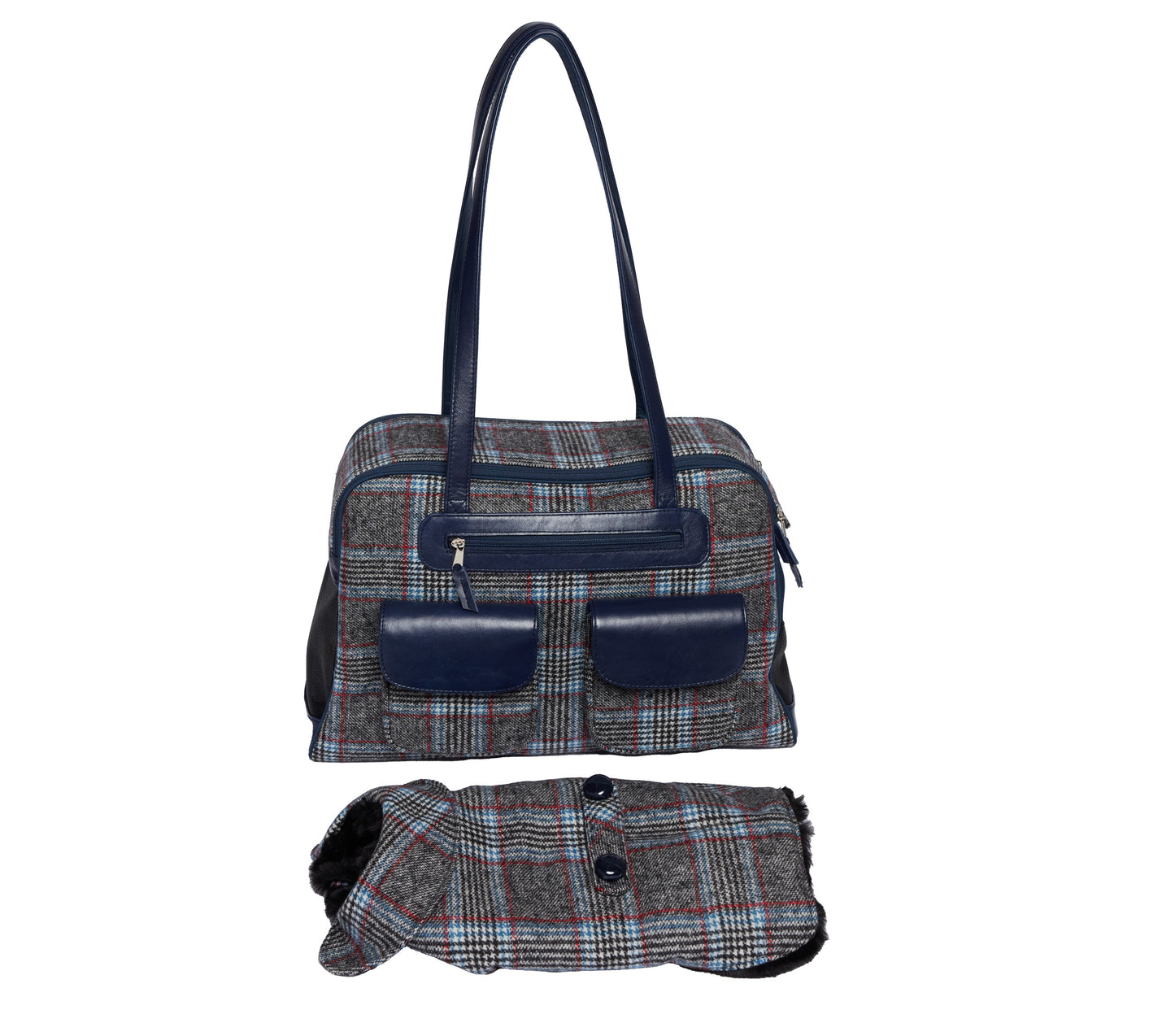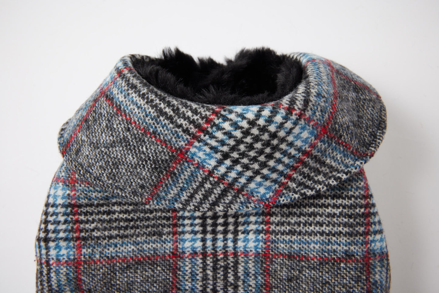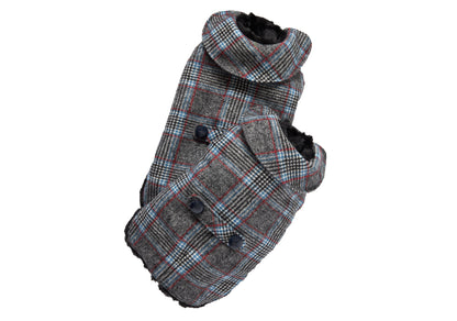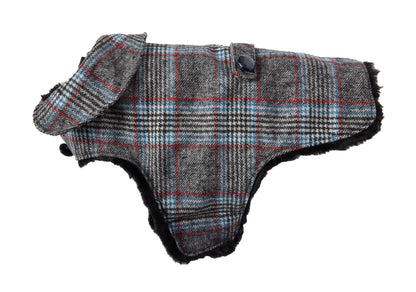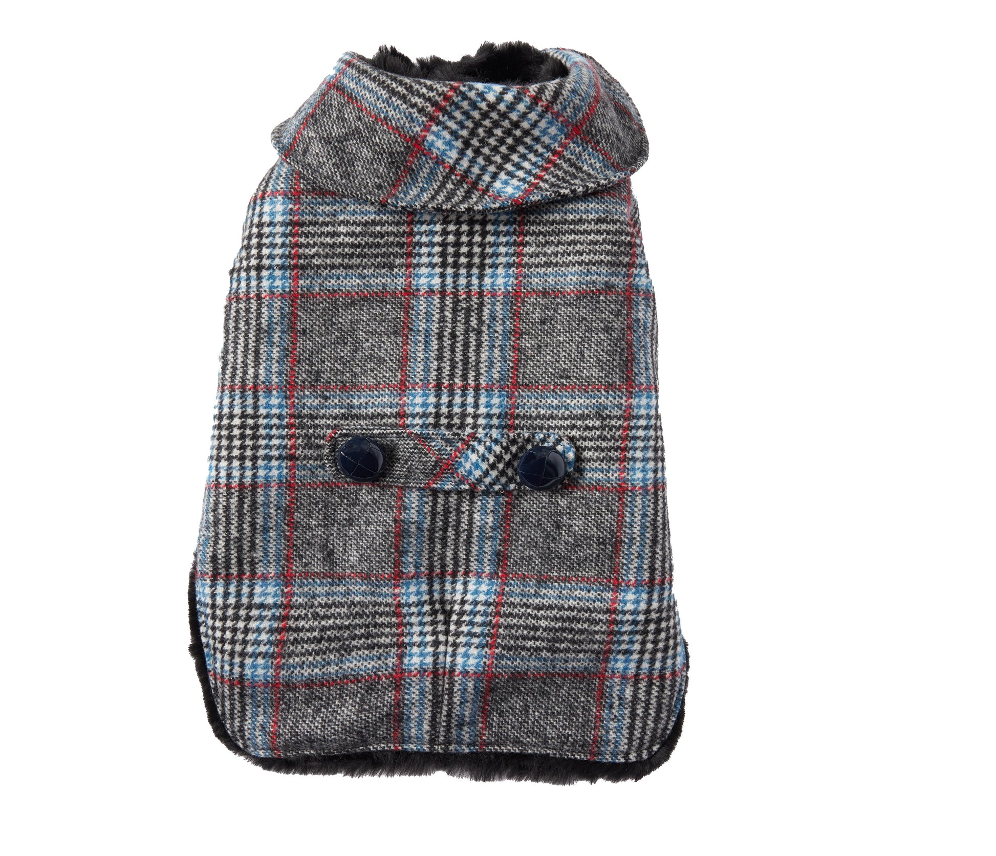 Couture Cashmere Coat w/ Faux Fur Lining - Gray & Blue Plaid