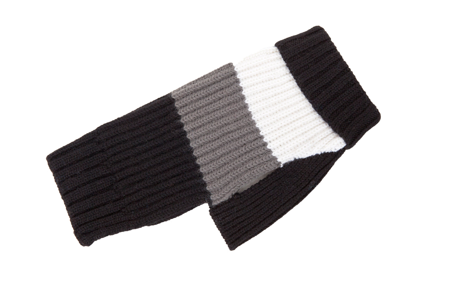 The Canine Styles Deer Valley sweater is a fashionable and warm choice for your pup. Crafted from 100% wool, this sweater provides superior comfort and coziness when temperatures drop. The special design with alternating black, grey and white stripes gives the sweater a modern and sophisticated appearance. The stripes are arranged in a blocked pattern, adding both texture and visual intrigue. Moreover, the colors combine to create an attractive and fashionable look. Not only does the Deer Valley sweater keep your pup warm, but it also looks great! It is crafted with attention to detail, guaranteeing a snug fit with lasting quality. From weekend walks to special occasions, this 100% wool sweater has your pup covered with style and comfort.