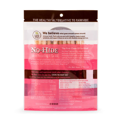 Our No-Hide Salmon Stix are a long-lasting perfect chew for small breed dogs. Easily digestible, created for your dog’s enjoyment and your own peace of mind. The wild caught salmon has been carefully rolled, cooked, and uniquely dried for a one of a kind chew your dog will love!