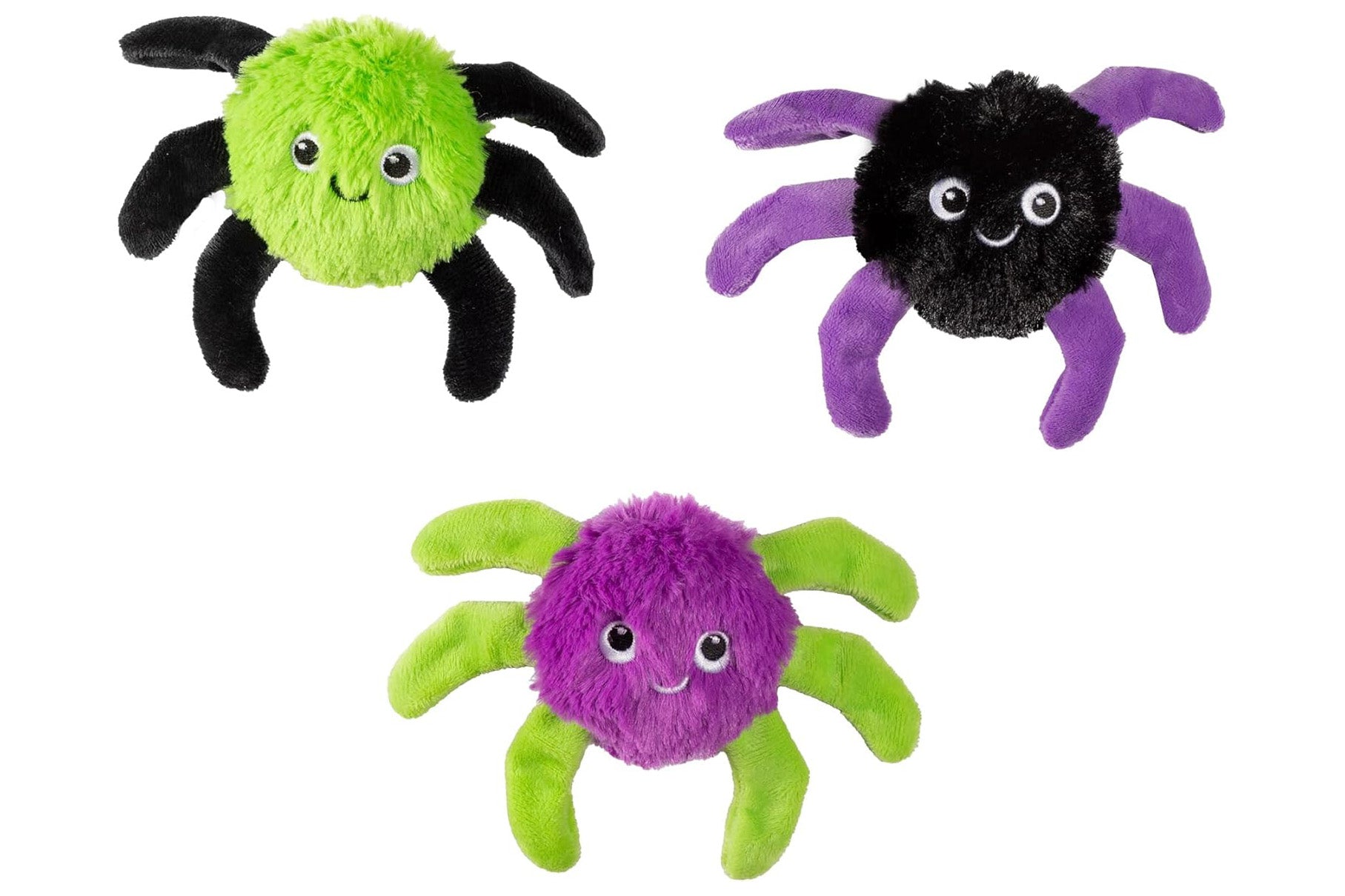 Time to spin up some fun! “Webbed in Mischief” mini plush toys are perfect for the pup that likes to play all day. Made with a loud squeaker and crazy crinkle paper in each toy, these spiders are sure to keep your pup tangled up in a good time. Great for small dogs and not intended for aggressive chewers.