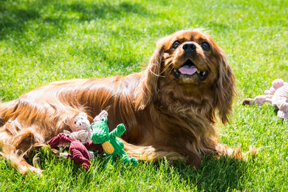 Natural tugging and chewing instincts are satisfied by the soft fabric, knots in the limbs and 5 squeakers. Knotties promote healthy exercise and mental stimulation which makes them a hit with owners, dogs, and puppies of all sizes and breeds.