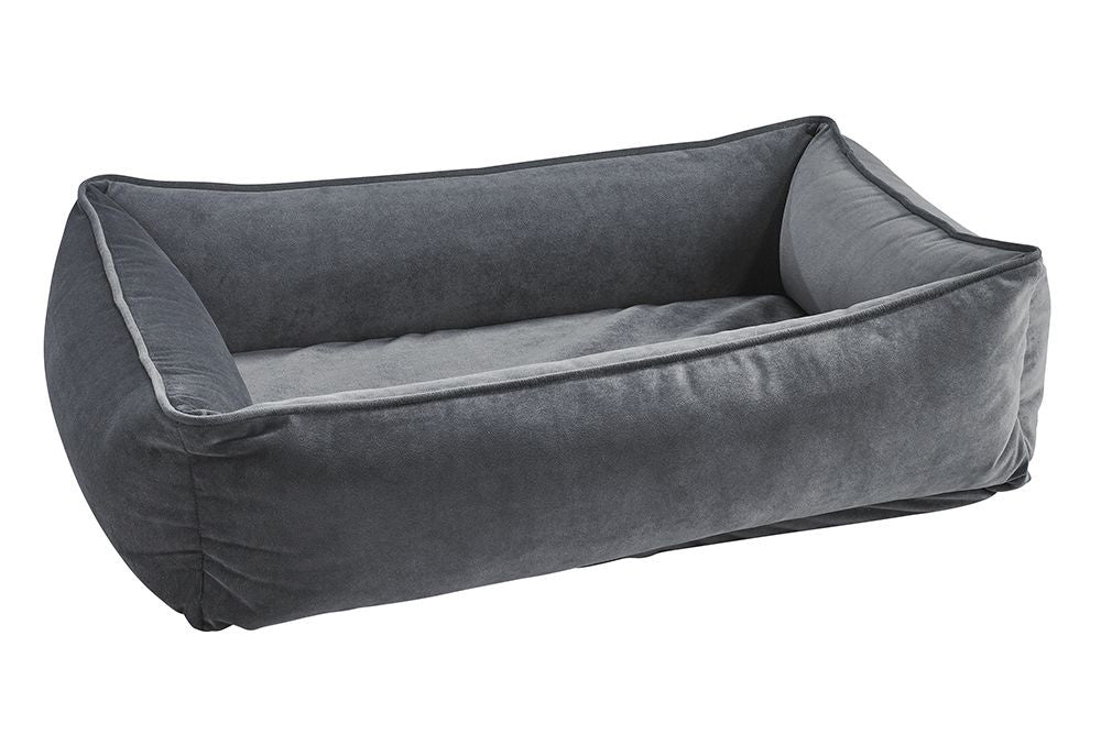For a no-fuss pooch that’s all about the comfortable life, this bed is the dog equivalent of spending a day in your favorite sweatpants and t-shirt. Micro-velvet material over the plush inner cushion provides amazing orthopedic support and the one-piece design keeps it intact while your pup tries to get comfy by digging. Sizes small through extra-large provides for exquisite comfort to any canine! Streamlined shape and contemporary design.