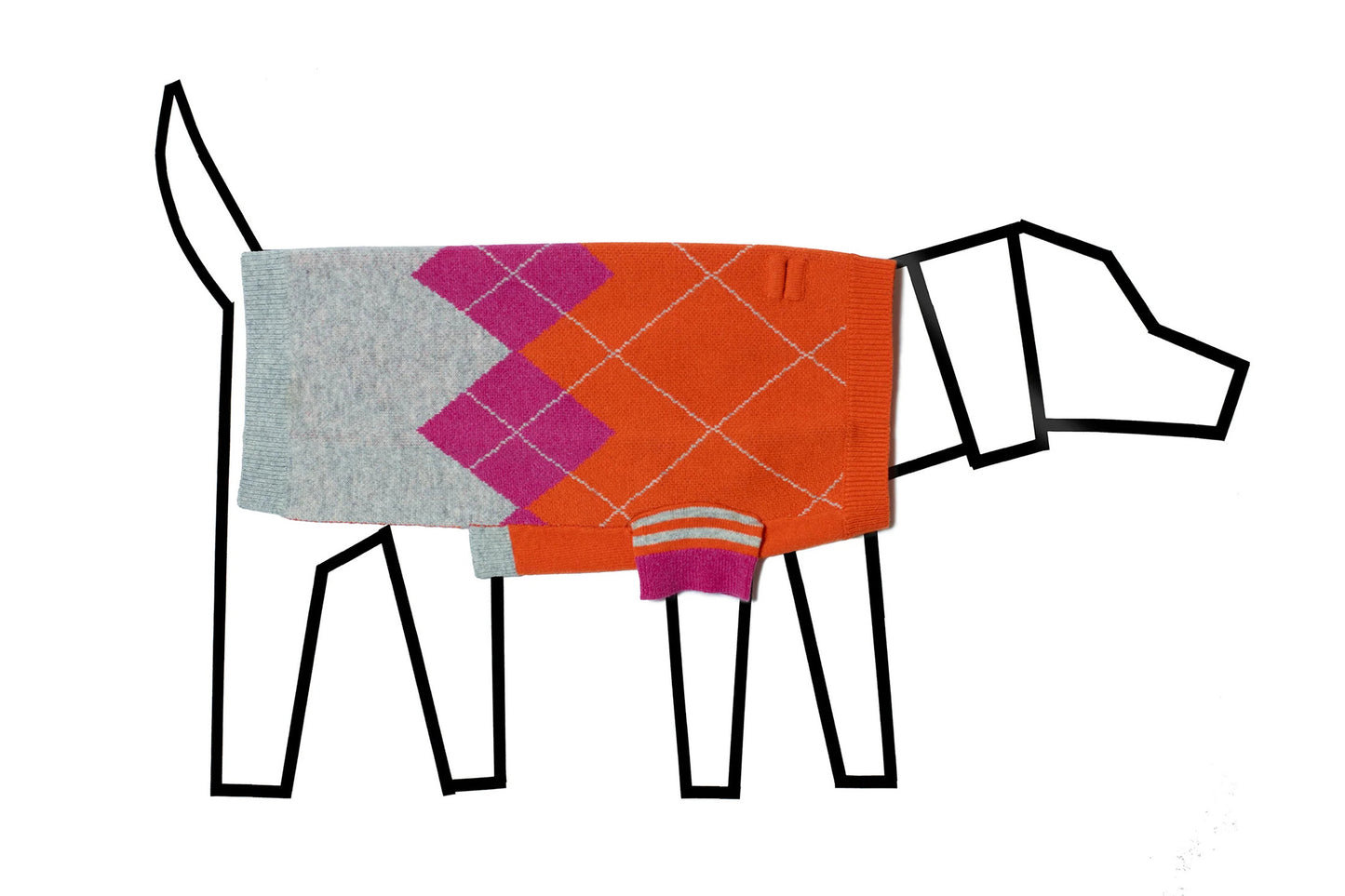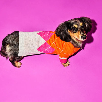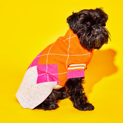 Dog Sweater - Argyle Dog Sweater - Orange/Pink