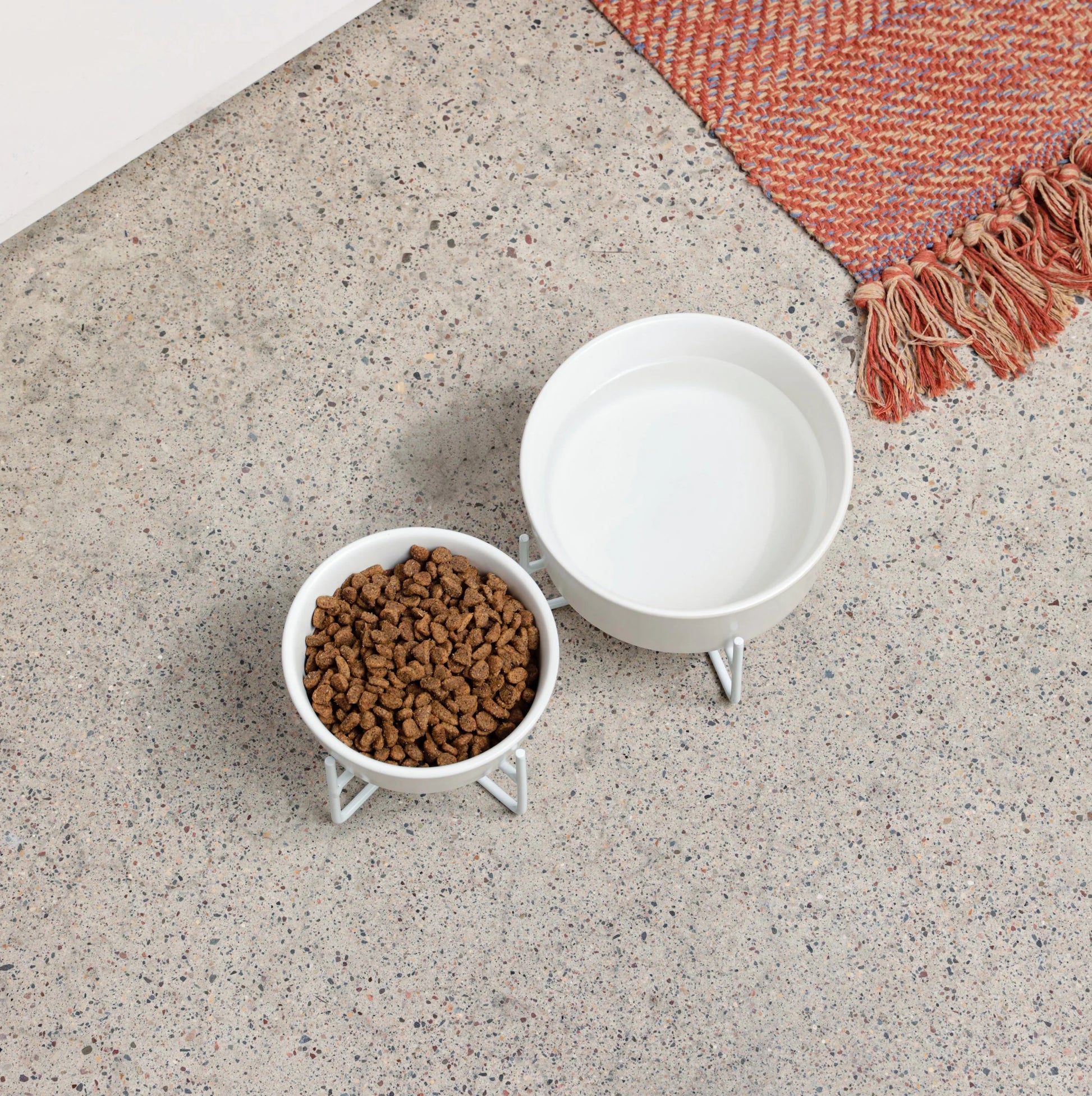 Simple Solid Dog Bowl w/Stand + Bowl - 2 color options