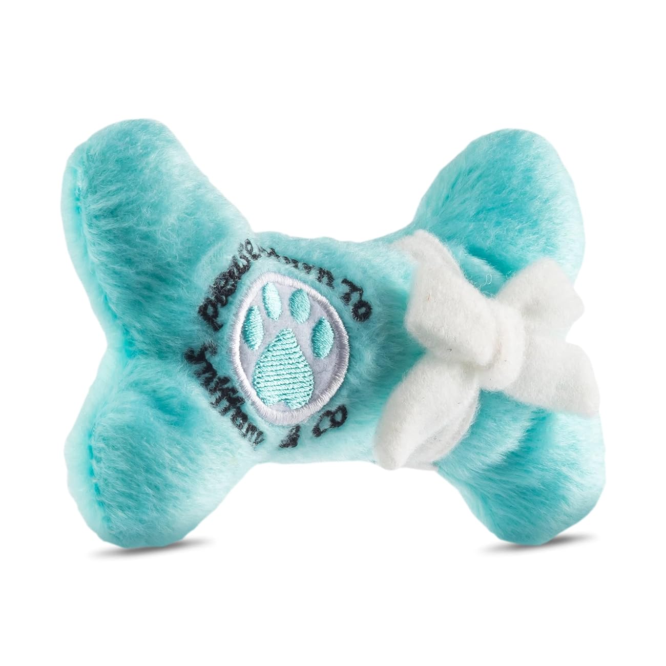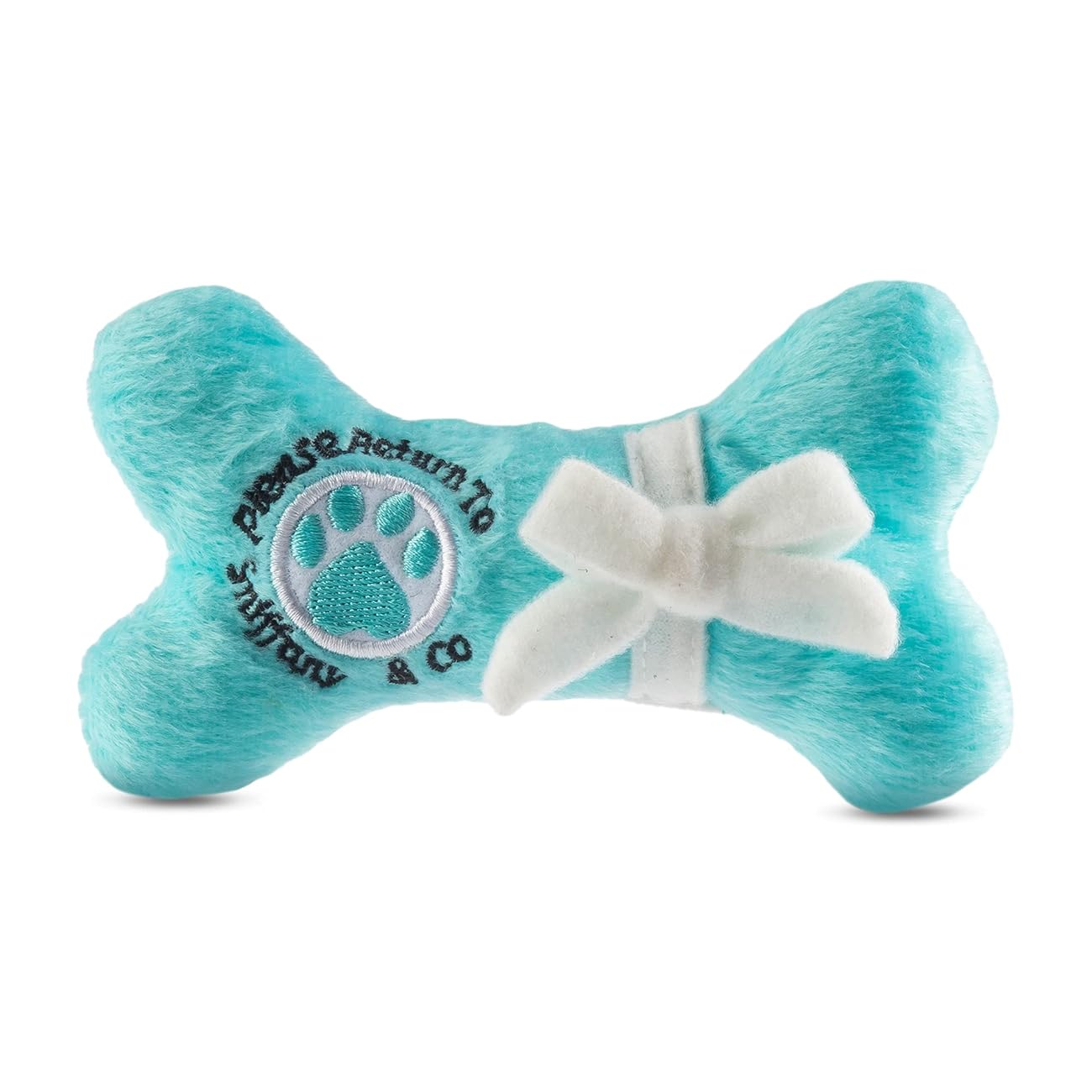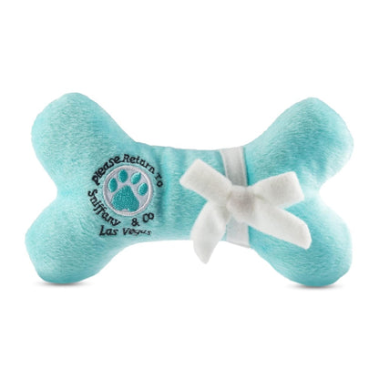 Of course your dog deserves a Sniffany & Co. dog bone toy! Parodied after Tiffany & Co., this bone is fit for the discerning diva dog and is sure to provide you with a hearty chuckle! If you love designer goods, your dog will too. Made from soft blue plush, it's embroidered with "Please Return To Sniffany & Co." It comes complete with a squeaker inside.