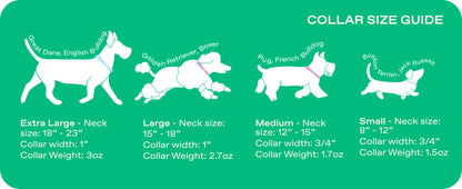 - X-Large: Neck Size: 18” - 22” | Collar Width: 1” | Collar Weight: 3oz