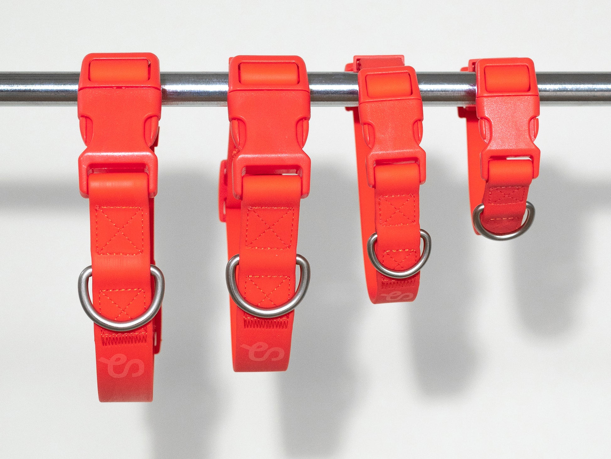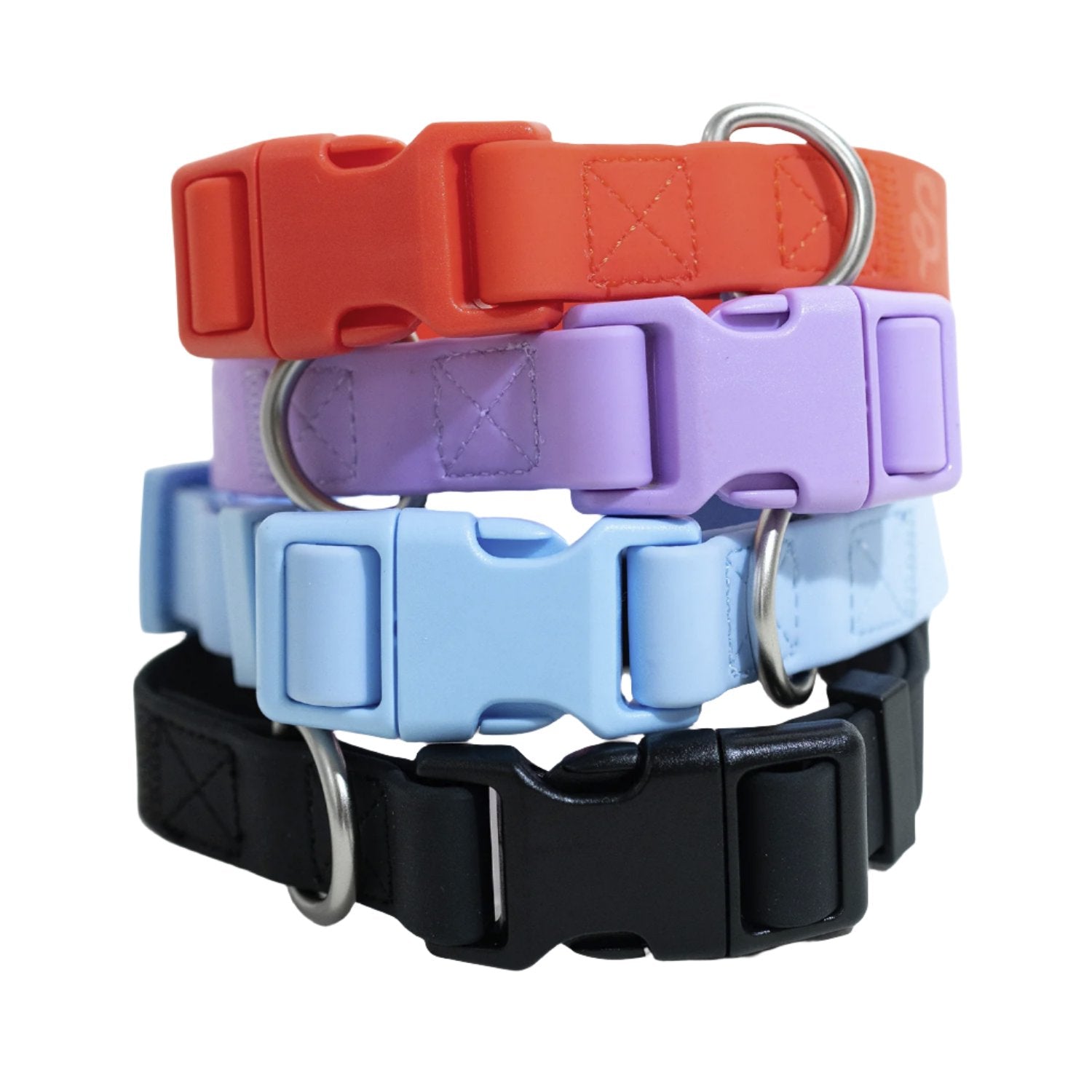 A durable, waterproof, and comfortable dog collar designed to keep up with everyday adventures. Made from lightweight PolyFlex materials for an adjustable fit with a safe-release buckle. Since things tend to get a little muddy, we designed our collars to be both dirt and odor-resistant— making it easy-to-clean and one less thing to worry about.