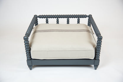 We love to blend the modern with the traditional to give a room more soul. Here’s a bed that does just that! A vintage piece revisited, this exquisitely designed bed is a beautiful update of the well-loved traditional bobbin chair with hand-turned wood detailing and stunning stacked ball legs. A squared off cushion adds a touch of the crisp and tailored. Crafted meticulously by hand, these beds are all about quality of construction and attention to detail. Our nap-worthy cushion completes the look and elevates sleep time to stellar status. The bed comes complete with a cushion and your choice of removable and washable cushion cover. For strength and durability, YKK upholstery grade zippers are used on all of our dog bed covers.