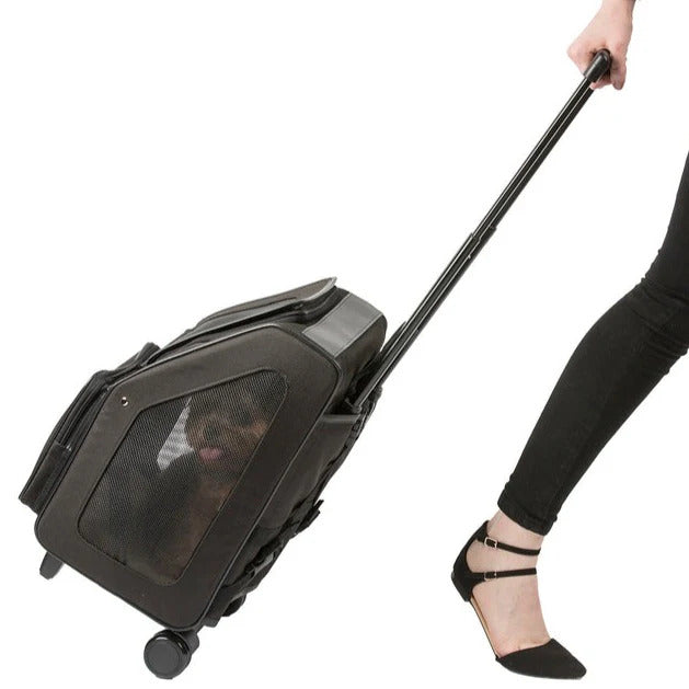 With this multifunctional rolling dog carrier in either Brown or Black, getting to the airport is stress free! When you've checked a bag or are just traveling a little lighter,Ā thisĀ puppy carrierĀ is a great option to roll throughout the airport. It not only serves as a roller bag, but a backpack and even a car seat for your canine! Dual pockets mean you can even carry some of your own items you want easy access to while on the flight! It also comes with comfortable, detachable backpack straps. Lay down aĀ puppy blanketĀ in the carrier for the ever-changing temperature of airports and planes. AndĀ pack the collapsible Travel Dog Bowl in aĀ pocket for whenever he gets hungry.