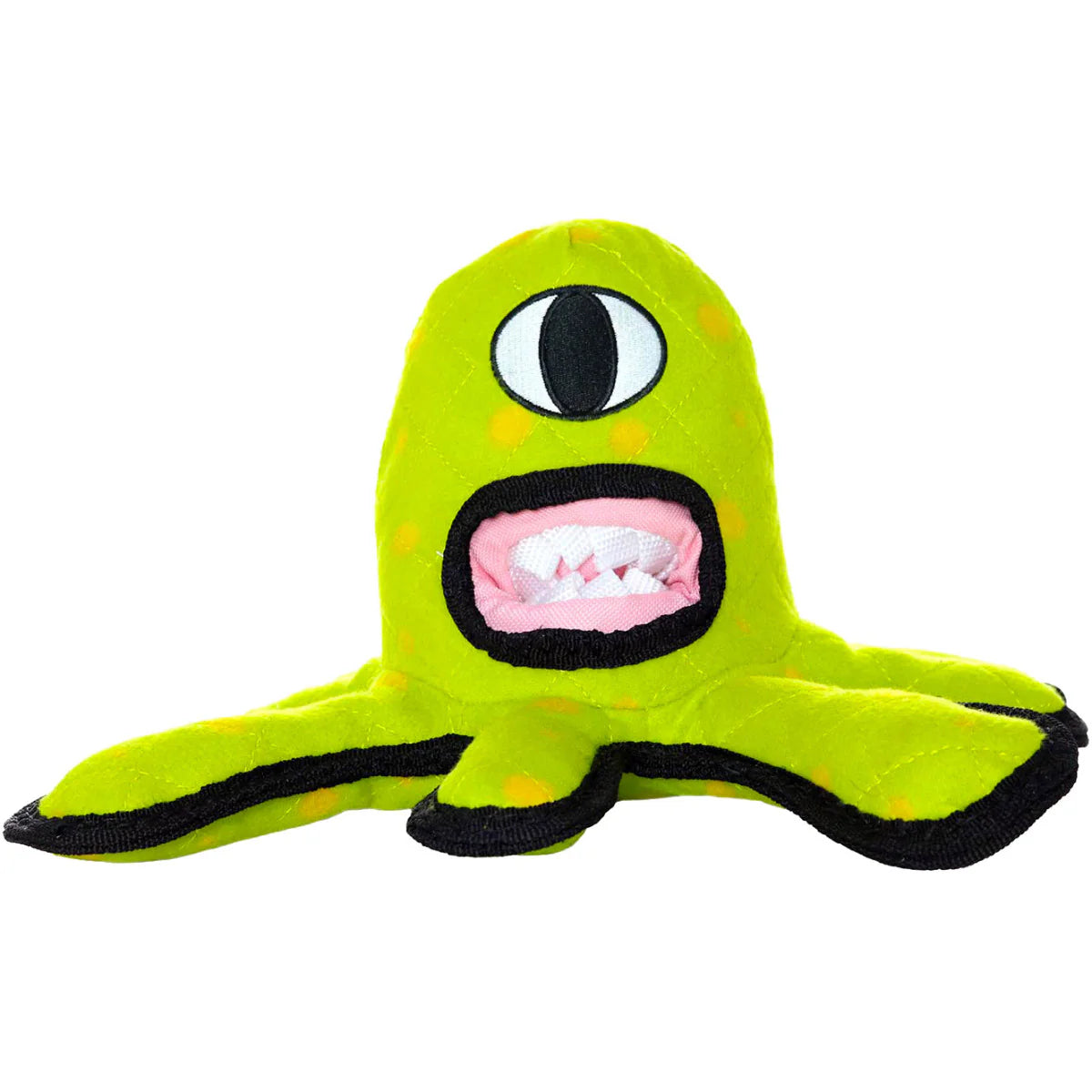 Tuffy® Green Alien - Great for interactive play with one or multiple dogs. This extremely, durable dog toy is great for playing tug or fetch! Soft edges won't hurt gums. Great for interactive play with one or multiple dogs.